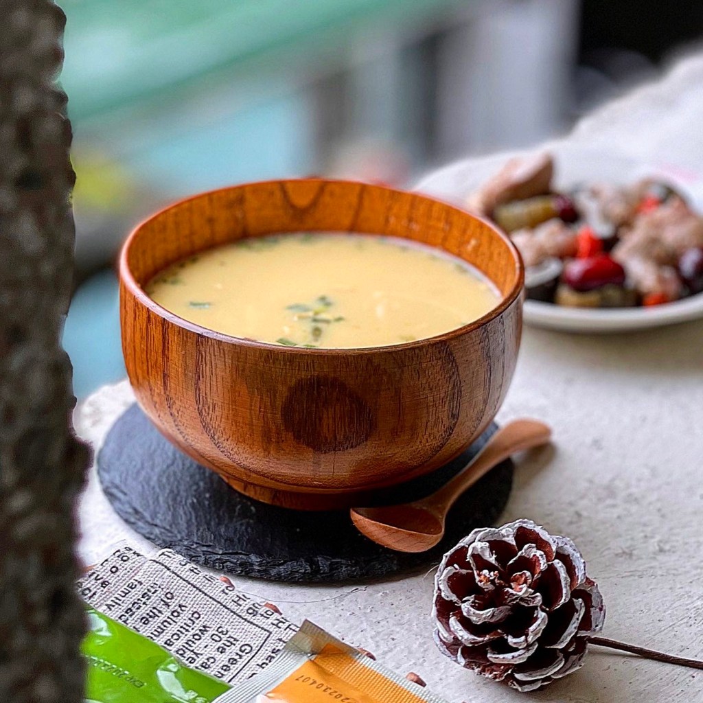 呈金黃色的法式蕈菇濃湯奶味香醇