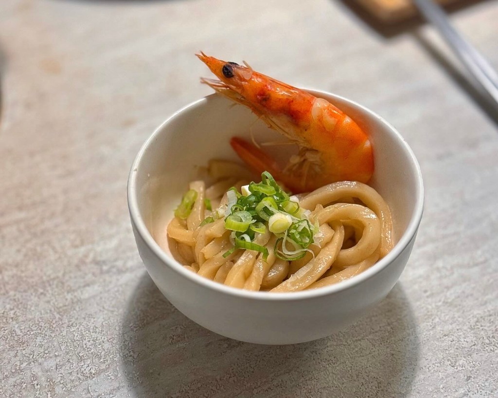 茶冉的蔬菜盤是我喜歡的樣子,沒有太多火鍋料、蔬菜也都很新鮮,在茶湯裡涮過之後風味非常好。副食中比較特別的是名古屋烏龍麵,我個人推薦的吃法是,煮熟之後先稍微放冷,再搭配蘿蔔泥醬油和些許蔥花,變成自製烏龍冷麵,口感更加滑溜有彈性。