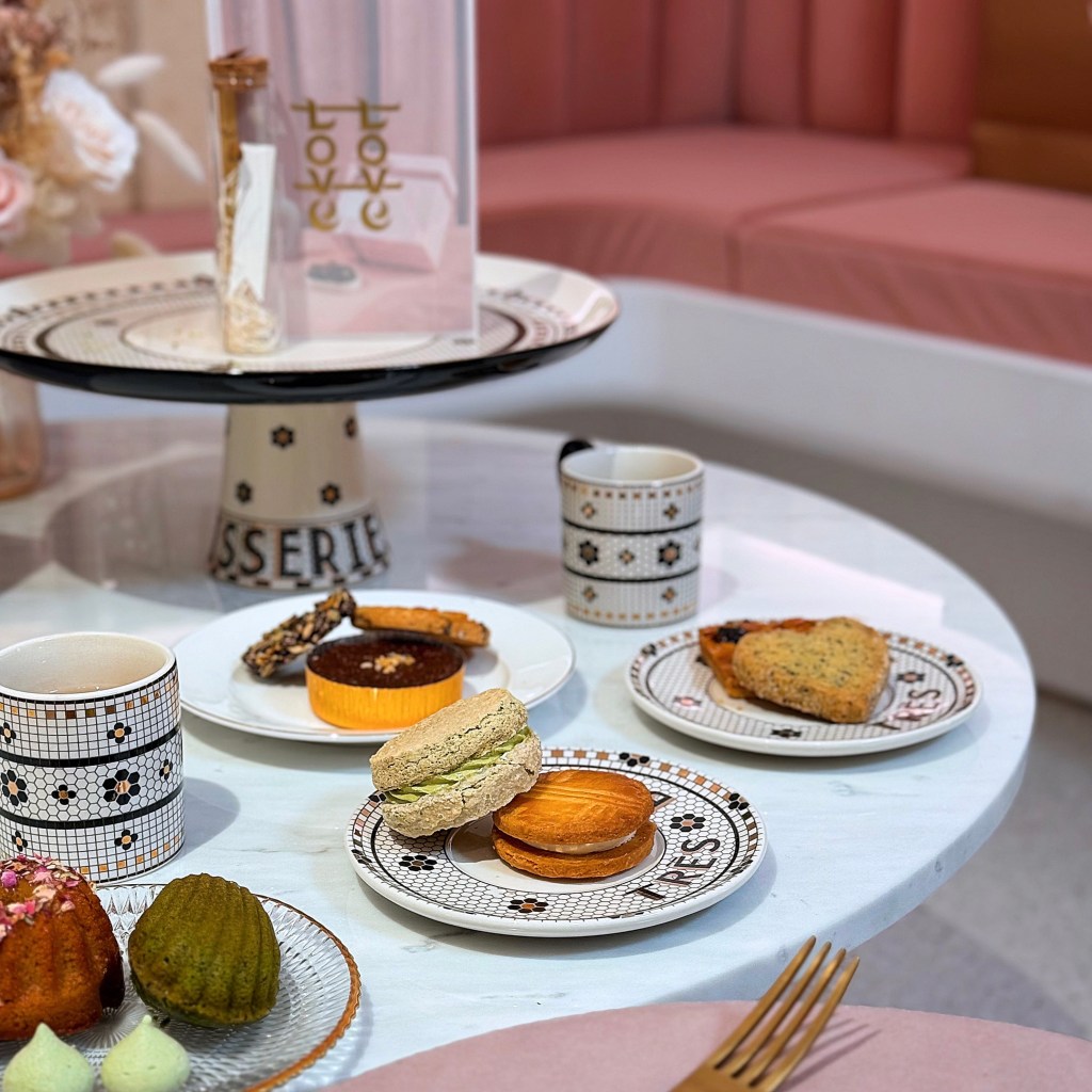 𝖠區系列甜點包含小旅人蛋糕、甜甜喜糖、以及法絨獨家的夾心布列塔尼酥餅。