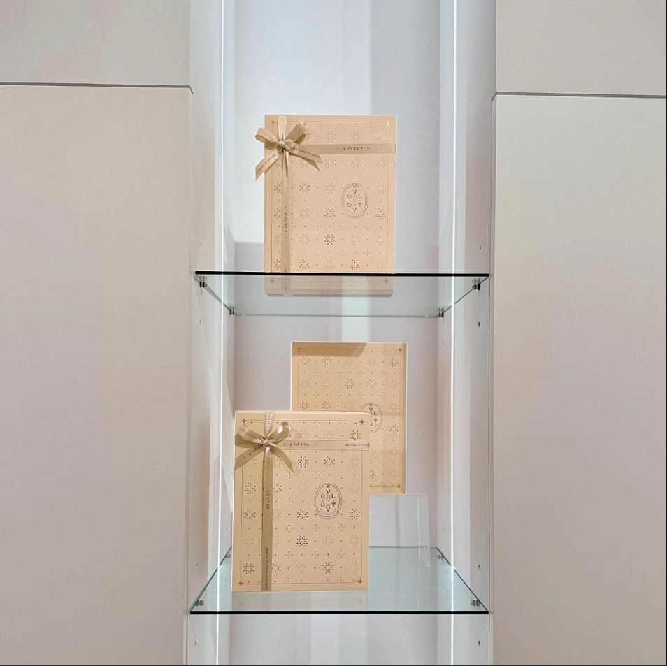 法絨的禮盒表面採燙金設計,燈光照射下的視覺效果極好,搭配上高質感緞帶和小卡,用來送禮也非常體面。除了這幾款常態禮盒,法絨也會在特別節日推出限定款包裝,漂亮的設計,讓我每種都很想收藏一組呢!
