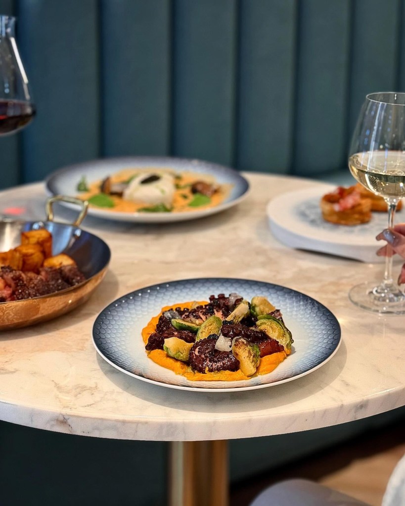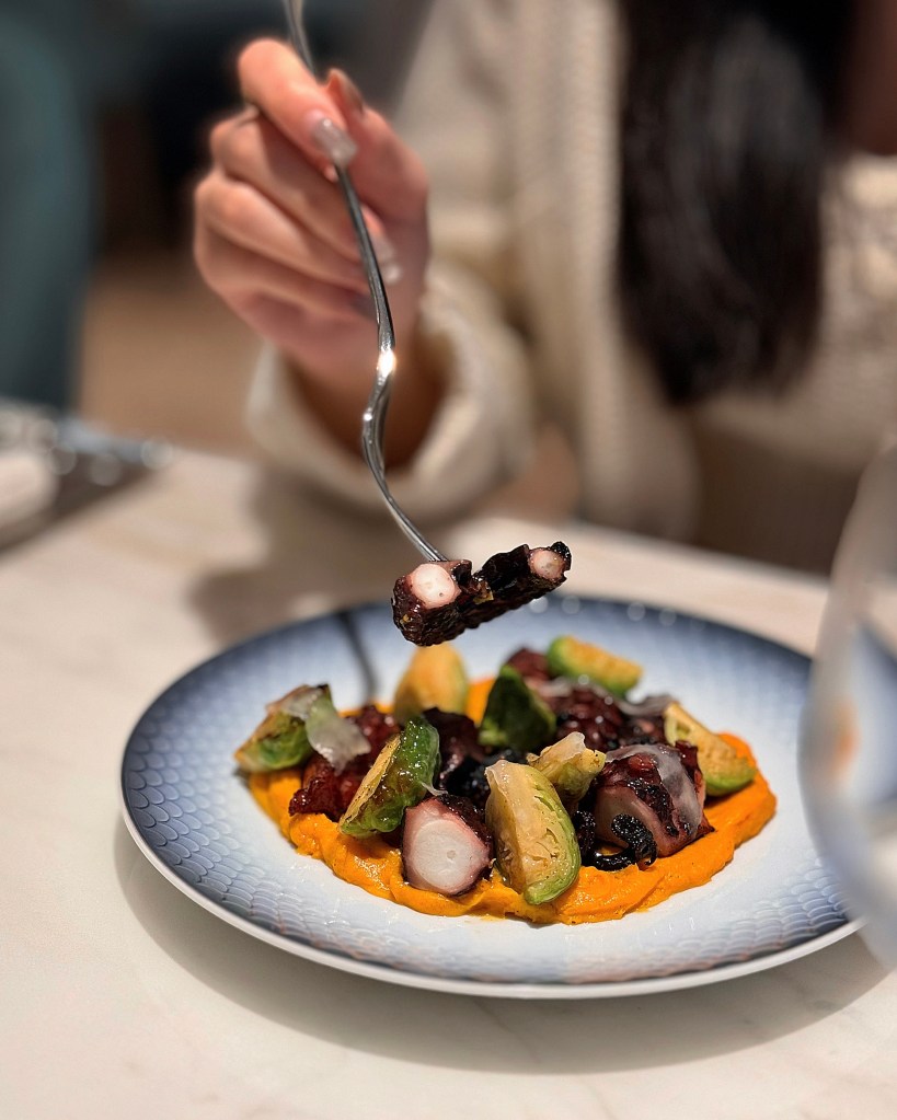 肥厚的章魚腳吃起來柔韌Q彈,鋪墊的紅薯泥質地柔滑,其自然甜感與炙烤香氣相互堆疊,意外迸出迷人焦甜香。