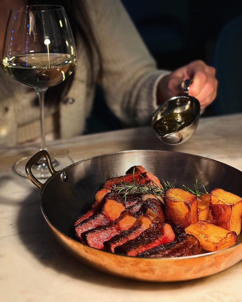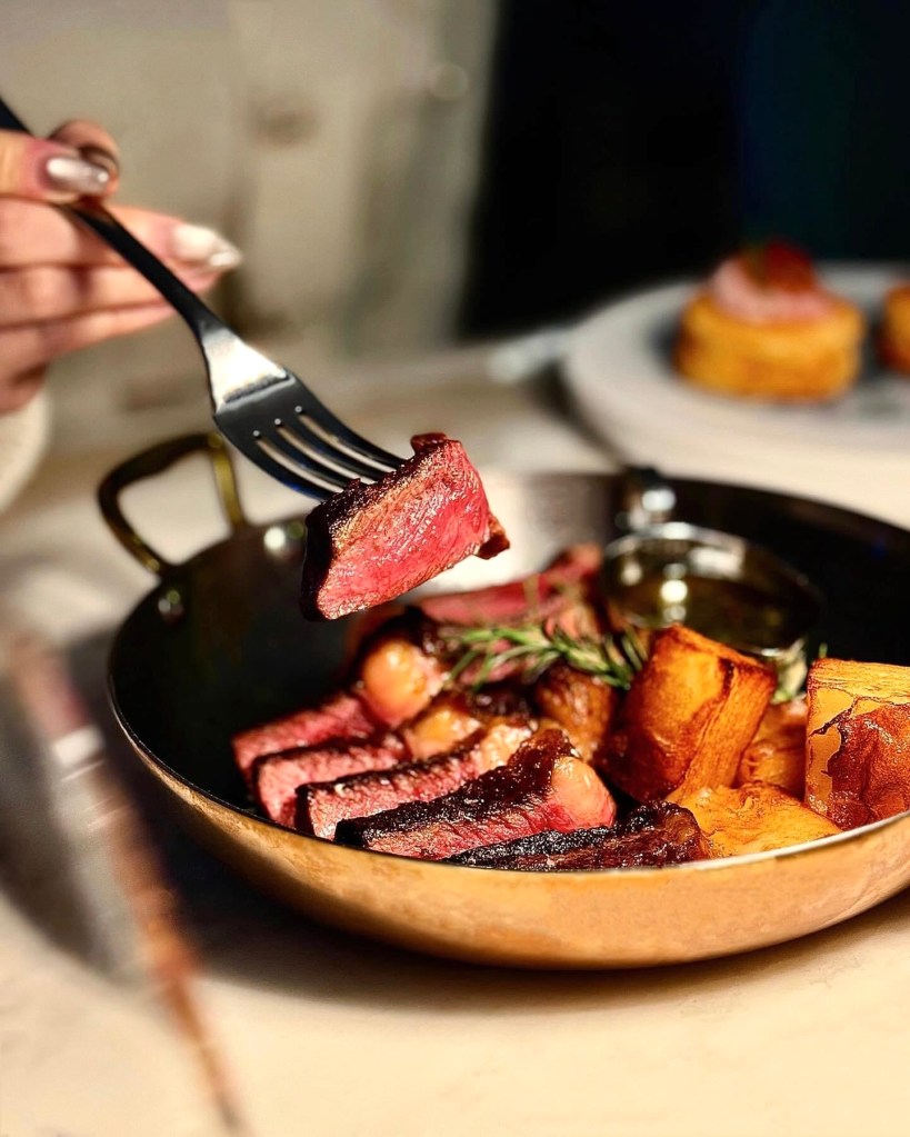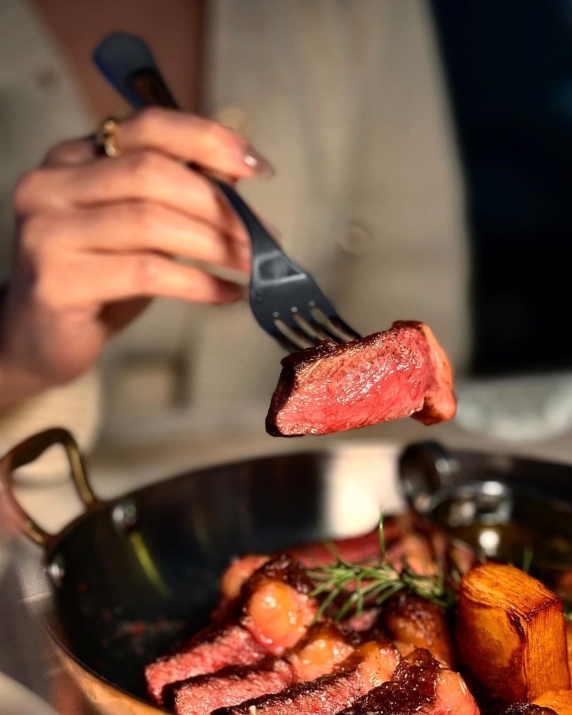 澳洲草飼和牛肉質極好,吃起來軟嫩多汁。瘦肉銜接一截脂肪的臀肉上蓋,可說是老饕最愛的部位,能同時嚐到肉脂香氣與甘甜。