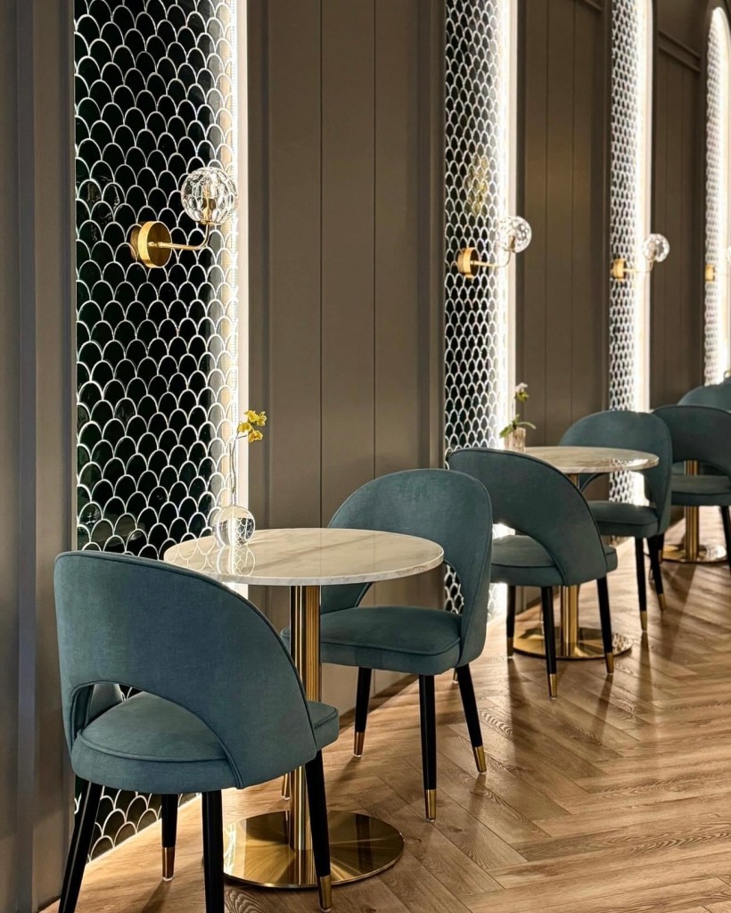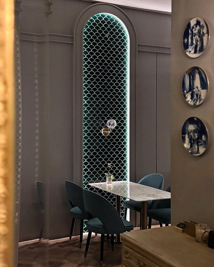 踏進餐廳,迎來輕鬆愜意的氛圍。裝潢以莫丹迪色調為主視覺,挑高空間搭配柔暖燈光,給人一種毫不壓迫的舒心感。